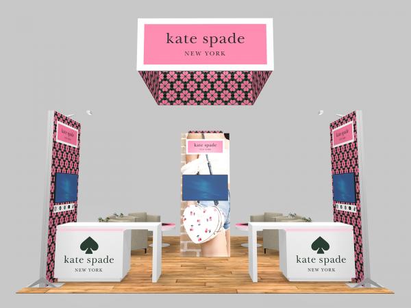 What’s the mission? And how does that mission serve to attract and facilitate engagement in the booth? Every exhibitor should ask themselves those questions before designing a new exhibit. The RE-9215 hits the mark on both questions. The design emphasizes interactions with attendees, whether at the reception counters or in the lounges. Those interactions are supported with monitors, large format graphics, and product displays.